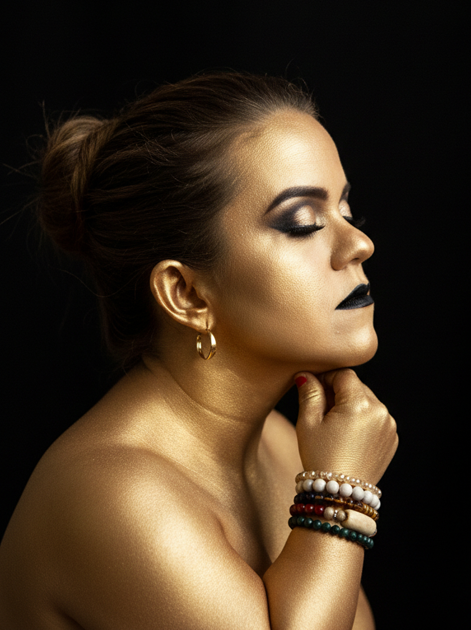 Ariete Angotti, modelo com nanismo, para nova exposição fotográfica “O Corpo Dourado da Vitória”.